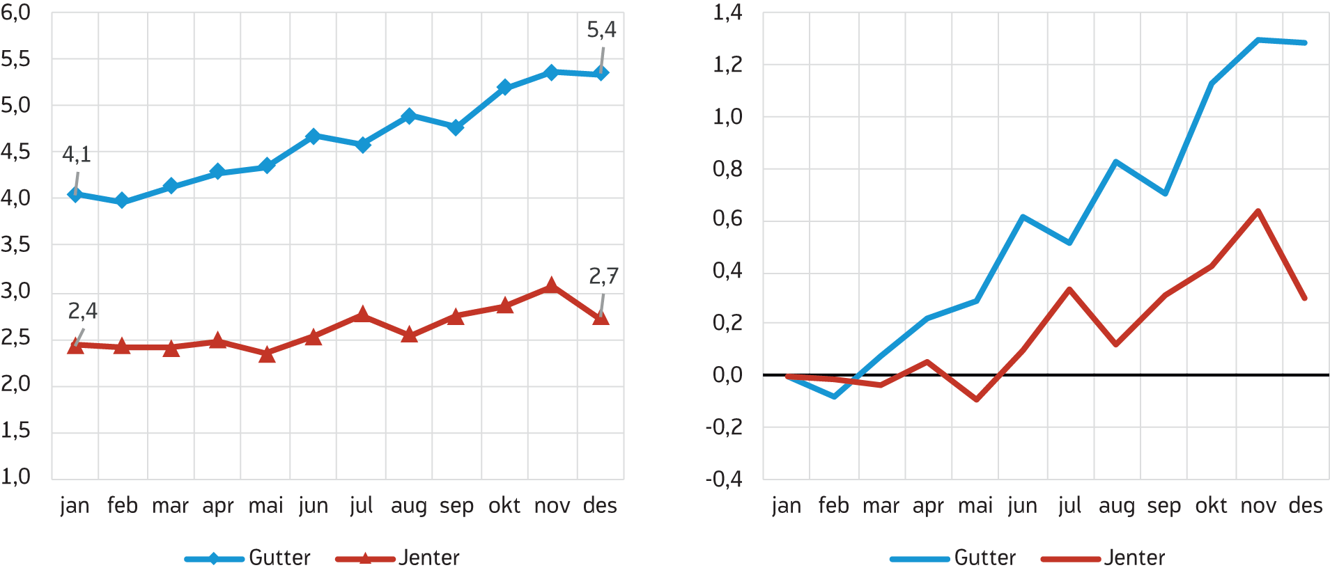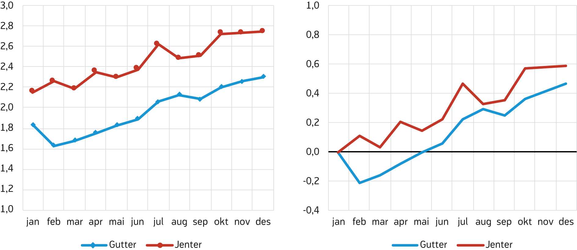 Er sammenhengen lik for gutter og jenter?