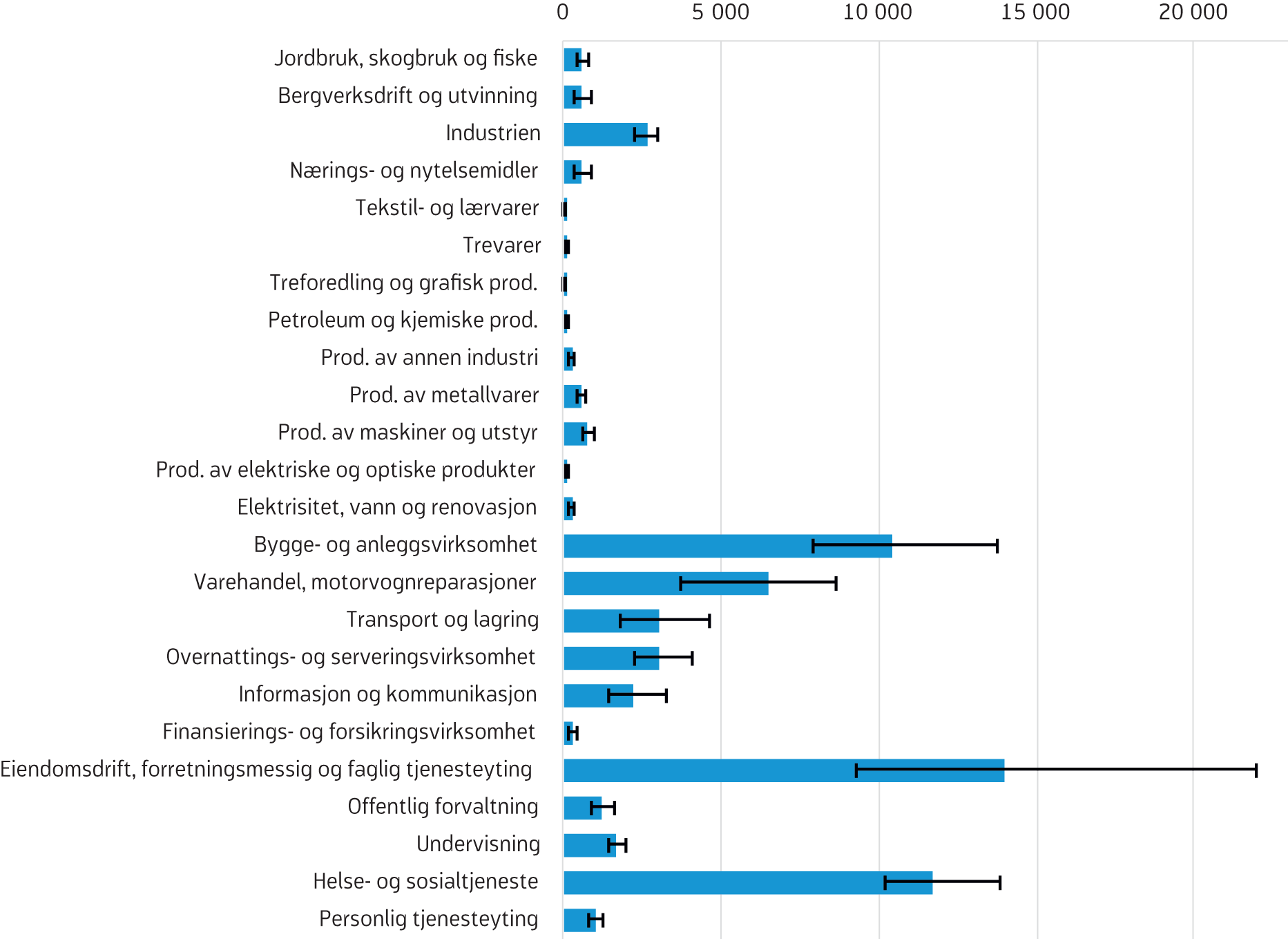 Figur 10: Estimert mangel på arbeidskraft med konfidensintervaller. Etter næring