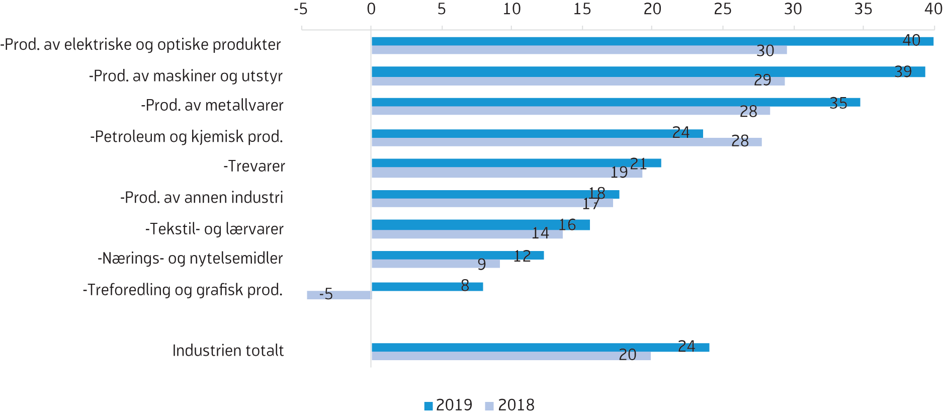 Industribedriftene er mer optimistiske enn i fjor, spesielt innen produksjon av elektriske og optiske produkter og innen produksjon av maskiner og utstyr. Det ventes sysselsettingsvekst innen samtlige industrinæringer det kommende året.
