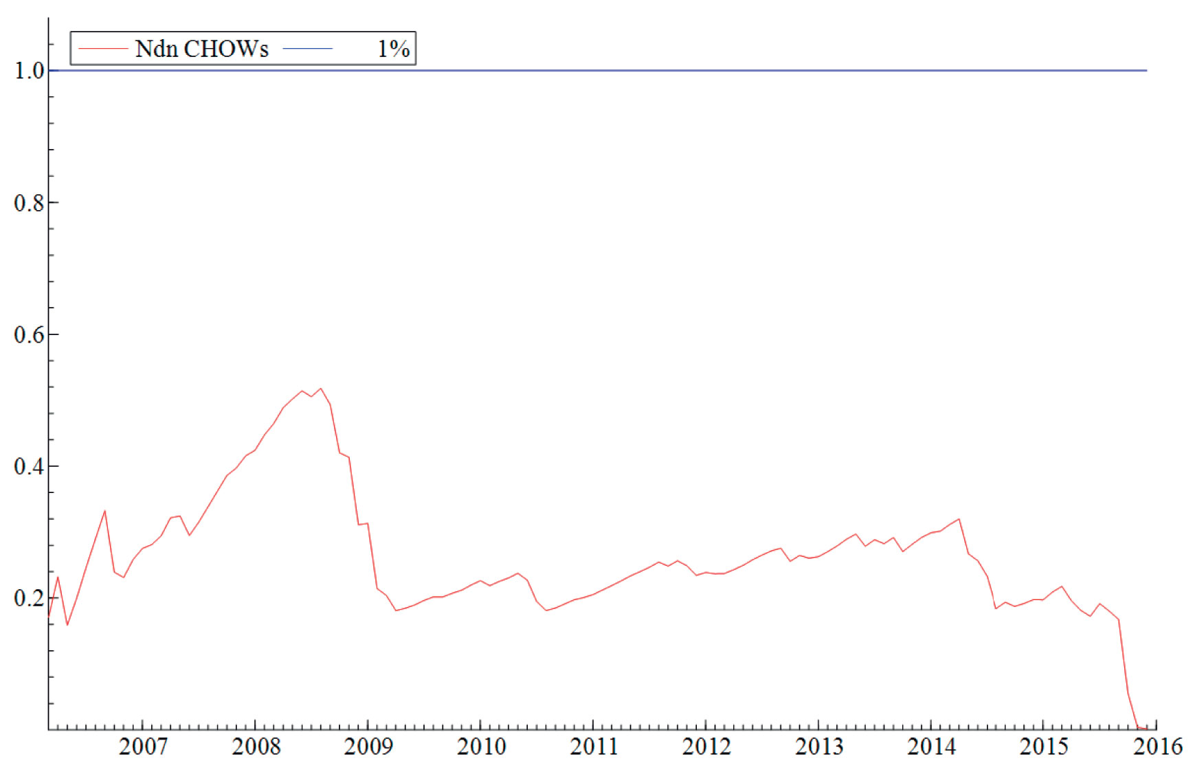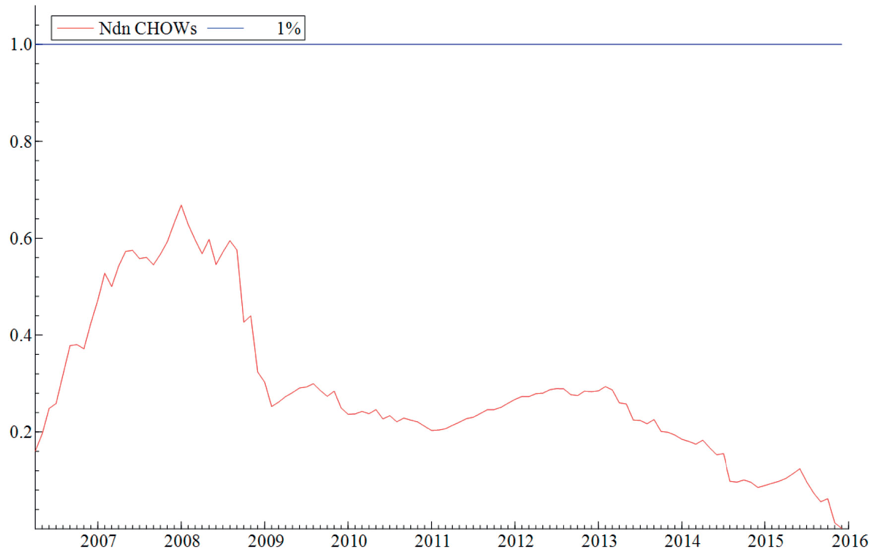 Antagelsen (ii) om at parameterne i modellene er stabile blir testet ved hjelp av rekursiv estimering. Rekursiv estimering gir oss et visuelt inntrykk av hvor stabile parameterne i modellen er over tid ved å kontinuerlig endre estimeringsperioden. Modellen blir først estimert over en kort periode før perioden gradvis øker samtidig som man re-estimerer modellen. På denne måten gir estimeringsmetoden oss et kontinuerlig bilde av modellens stabilitet over en lengre tidsperiode. «Break-point Chow»-testen blir benyttet til å teste hypotesen om at modellene er stabile i perioden modellen blir estimert (februar 2004 til desember 2015). Testen viser at modellene er stabile over tid og at det mest sannsynlig ikke har forekommet noen strukturelle brudd i perioden modellene ble estimert over. Den visuelle fremstillingen av testen finner du i vedlegget, se Figur V1-V4.